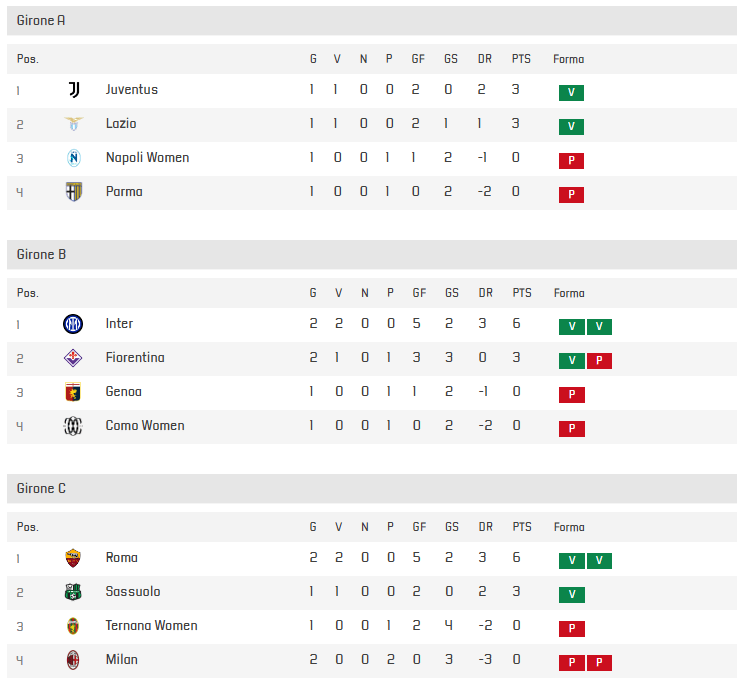 Les 12 équipes de la série A 2025-2026 sont dispatchés dans 3 groupes de 4 équipes (suite à un tirage au sort). Les 3 premières et la meilleure 2ème vont en 1/2 final pour tenter de décrocher le trophée. Les louves se trouvent dans le groupe C avec Milan, Ternana et Sassuolo.