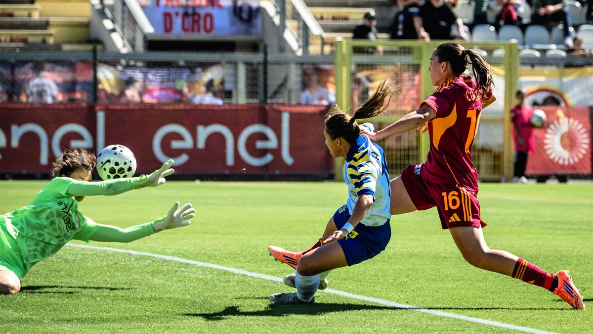 - 26’ – Tête de Rabot qui termine pas loin de la cage défendue par Rachele Baldi. Autre danger créé par le Parma.