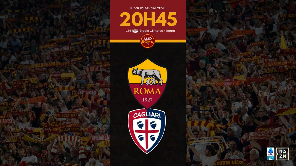 Ce lundi 9 février 2026 à 20h45, l’AS Roma accueillera le Cagliari de Fabio Pisacane à l’Olimpico pour le compte de la 24ème journée de Serie A 2025/26.