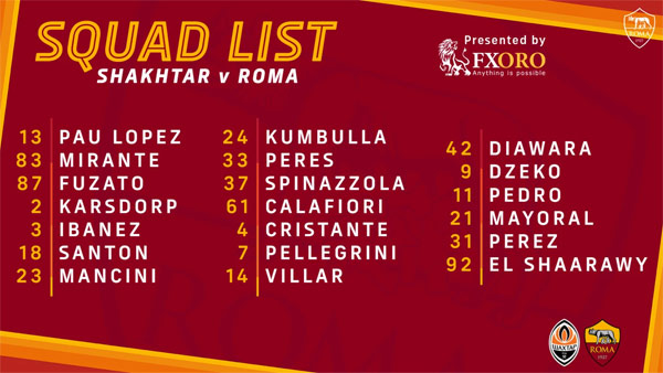 La Roma, arrive d’une défaite 2-0 inattendu face à Parme (19è de série A). Le Shakhtar de son côté, arrive d’une belle victoire 4-0 face au 4è du championnat Ukrainien.