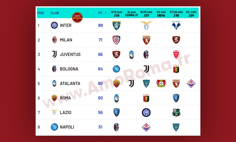 Serie A : calendrier des équipes encore en course pour une place en Ligue des Champions.
