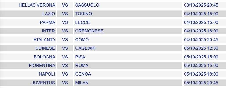 🥅 Sur les 5 premiers matchs de la saison : 4 victoires (Bologna 1-0 / Pisa 1-0 / Lazio 1-0 / Verona 2-0) et 1 défaite (Torino 0-1)