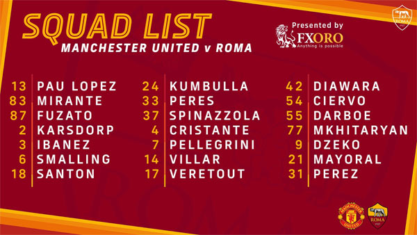 Jeudi 29 avril 2021 à 21h00, les Giallorossi se rendront à Old Trafford pour le match aller des 1/2 de finale d’Europa League 2020/21 pour y défier Manchester United.