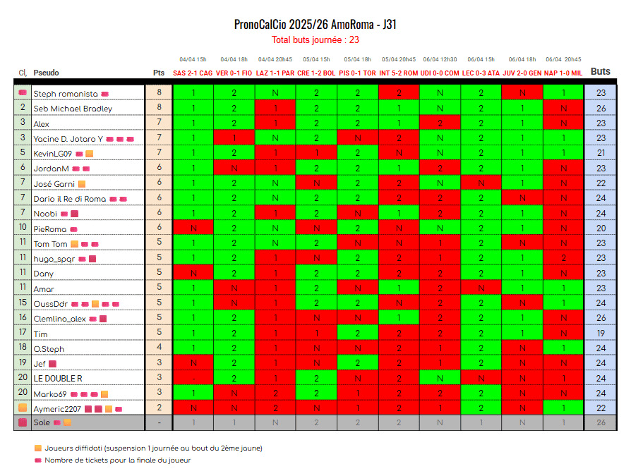 J31 : 🎟️ StephRomanista – 🟨 Aymeric > 🟥 Aymeric