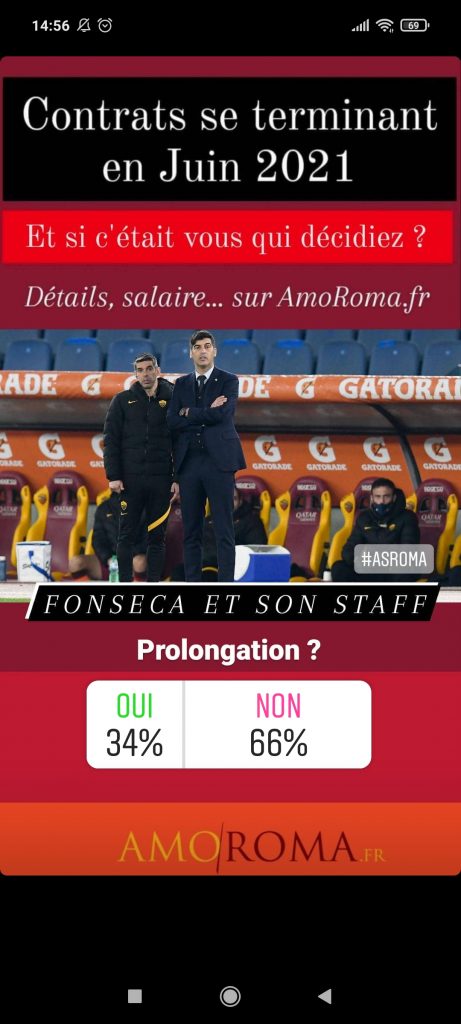 Concernant Fonseca et son staff, ses deux derniers résultats en série A mais surtout la manière et ses déclarations font pencher la balance pour le non. La qualification en Europa League donnent encore de l’espoir à 1/3 des votants.