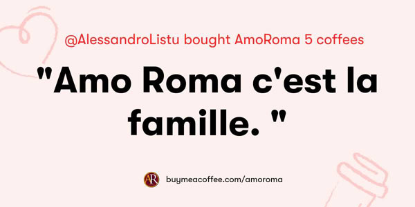 AmoRoma a besoin de vous pour continuer d’exister et de grandir. Nous avons mis en place une opération ‘Buy Me A Coffee’ permettant à ceux qui le souhaitent de nous soutenir pour notre travail et par la même occasion de gagner des cadeaux.