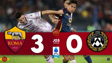 AS Roma 3 – 0 Udinese : La Roma surclasse le leader du championnat !