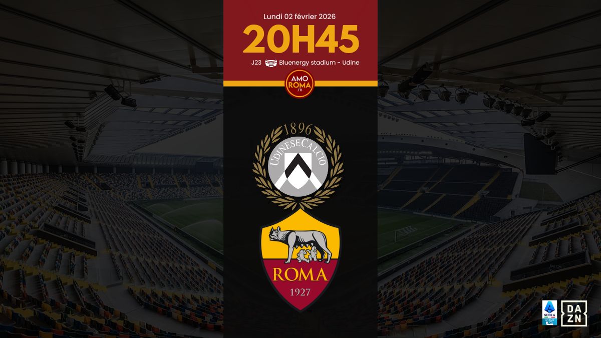 Udinese / AS Roma – J23 : Présentation, diffusion TV et programme AmoRoma.